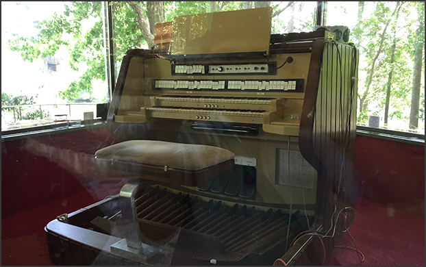 dedication plaque, a twin of which sits in a case near the keyboard